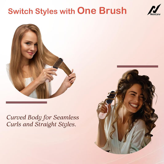 NexLev Hair Straightener Brush | Ceramic Coated Wide Plate| Anti-Frizz Professional Styling with iON Technology HSB-03