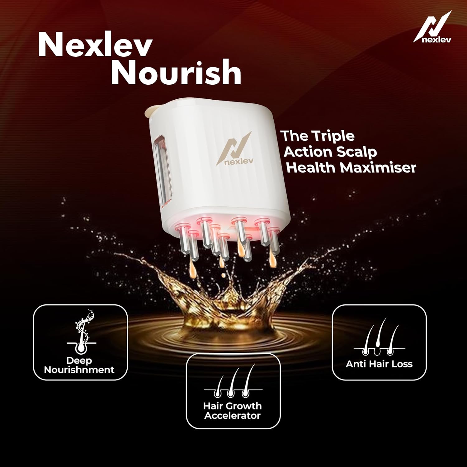 Experience the ultimate hair care bundle with Nexlev's Electric Scalp Massager - GROW and Electric Oil Applicator EA-01. Both devices harness the power of 635 NM Red Light Therapy, stimulating hair follicles, boosting collagen production, and enhancing blood circulation to promote thicker, fuller hair.