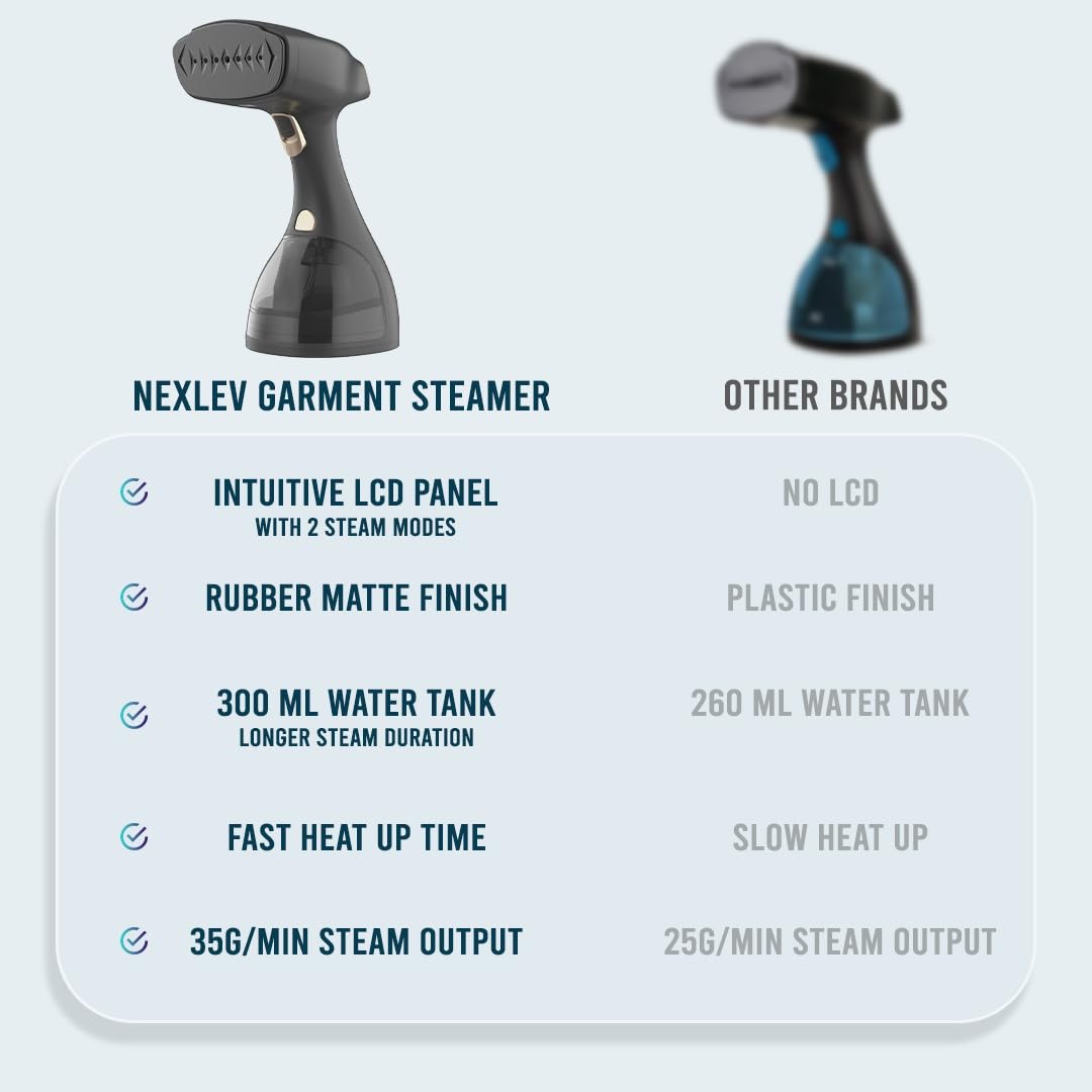 - Boost your garment care routine with the Nexlev Garment Steamer – the perfect solution for fast, easy, and effective wrinkle removal.